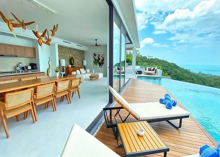 تقع Anzhu Seamate Villa Samui المكونة من 3 غرفة نوم على بعد نحو 3 كم من شاطئ لاماي، وتوفّر للضيوف بركة السباحة الخصوصية والحديقة. تقع الفيلا على بعد نحو 10 دقائق بالسيارة من متحف ساموي المائي، وتتميّز بالشرفة مع إطلالات على المسبح.